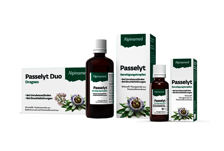 - Passelyt Beruhigungstropfen: rasche Hilfe in akuten Stresssituationen, unterstützt durch die traditionelle Arzneipfplanze Passsionsblume