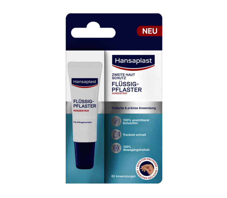 Testen Sie jetzt das neue Hansaplast® Zweite Haut Schutz Flüssig-Pflaster Konzentrat mit der -15% Kennenlern-Aktion.