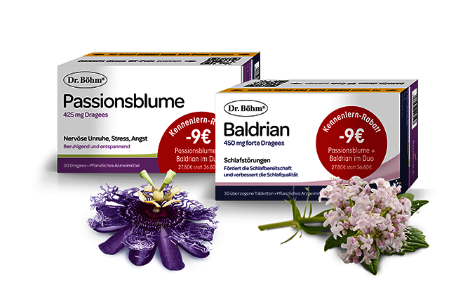 Beim Kauf von Dr. Böhm® Passionsblume und Dr. Böhm® Baldrian gilt ein Kombinationspreis von € 27,80. Nur ein Gutschein pro Kauf einlösbar.€ 27,80