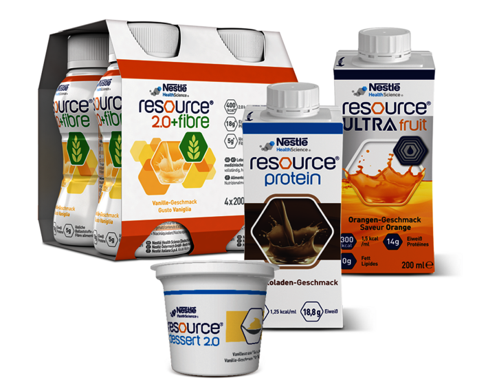 - resource® 2.0+fibre: 400 kcal und 18 g Eiweiß pro Flasche (PZN 3588620, PZN 3835656, PZN 3588637, PZN 3588643, PZN 3588689, PZN 4855477, PZN 3588666)