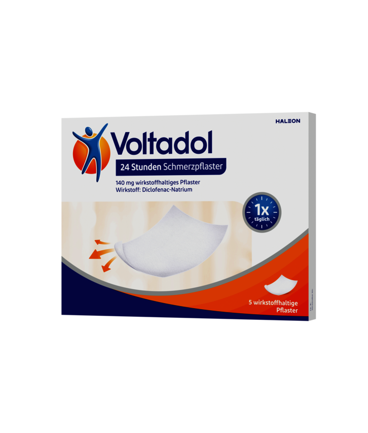 Das erste Produkt der Voltadol Familie mit 24 Stunden-Wirkung. Der bewährte Wirkstoff Diclofenac wird vom hauchdünnen Matrix Pflaster konstant über 24 Stunden an die Schmerzstelle abgegeben. Für effektive Schmerzlinderung bei Sportverletzungen wie z.B. Verstauchungen, Zerrungen und Prellungen. Ab 16 Jahren.